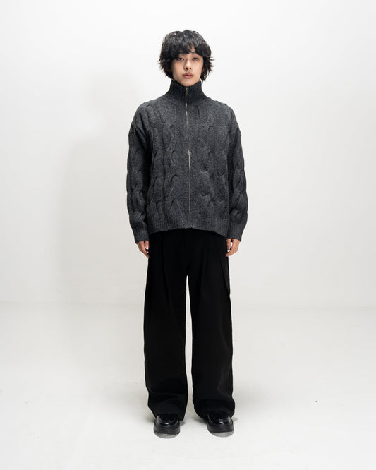 High-Neck Cable Knit Sweater D.GRY