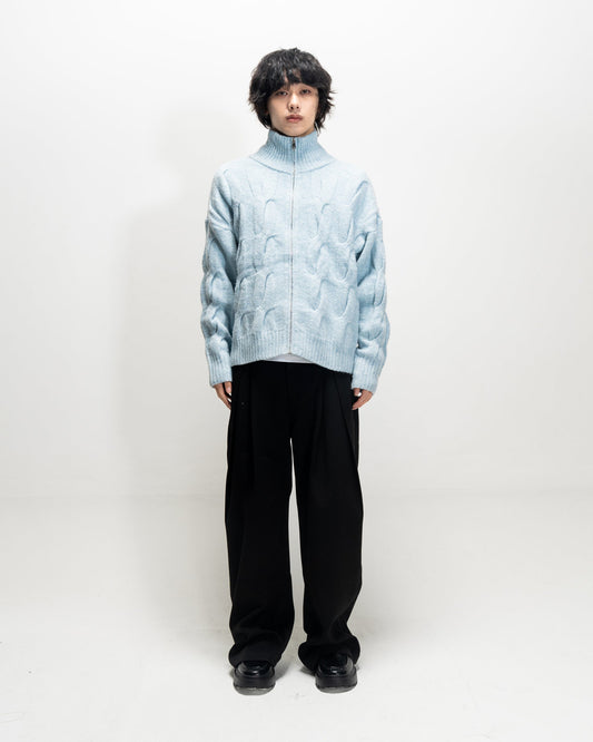 High-Neck Cable Knit Sweater