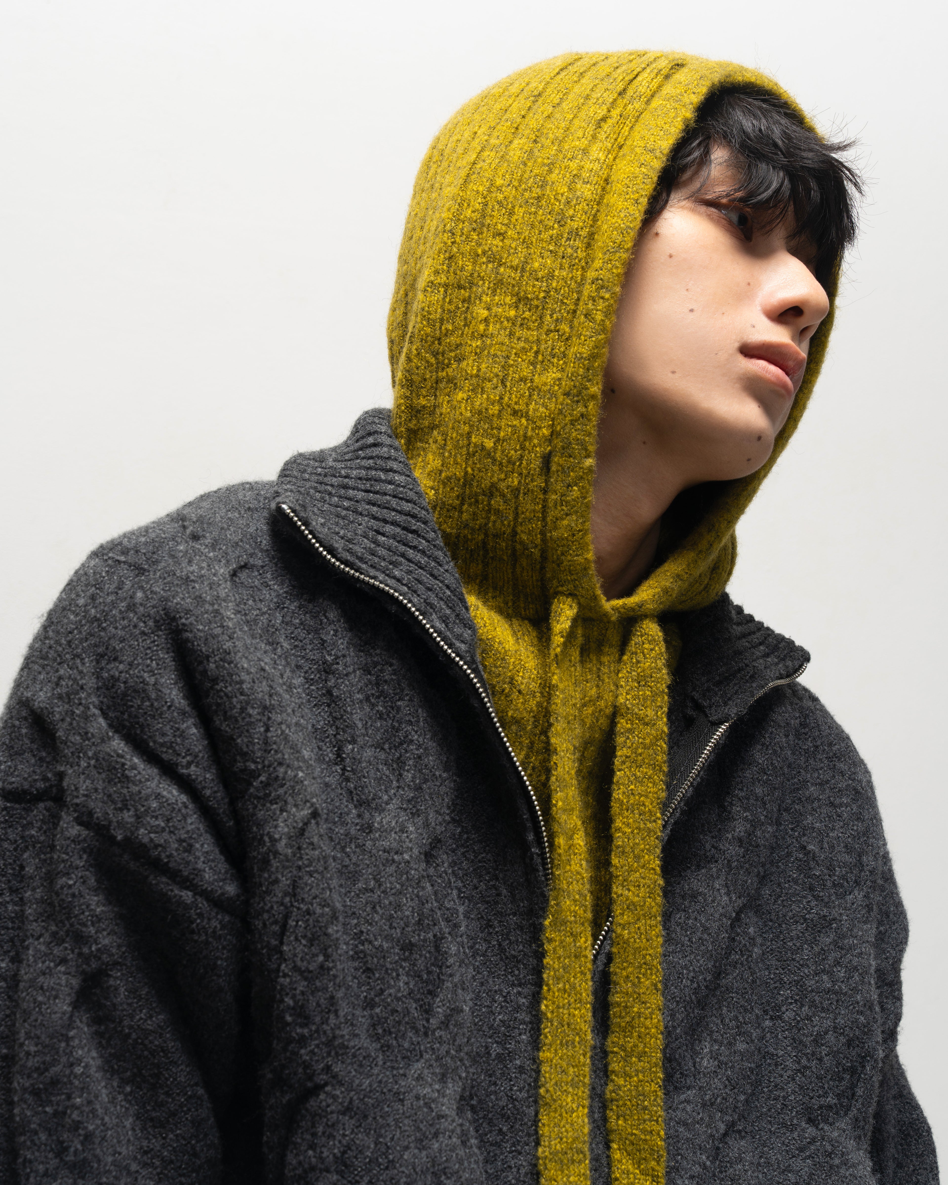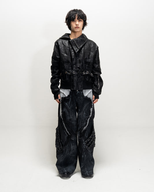 Deconstructed Waxed Asymmetric High-Neck Jacket