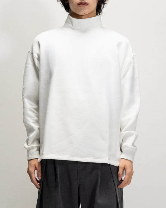 Blended Fabric High-Neck Split Long-Sleeve T-Shirt WHT