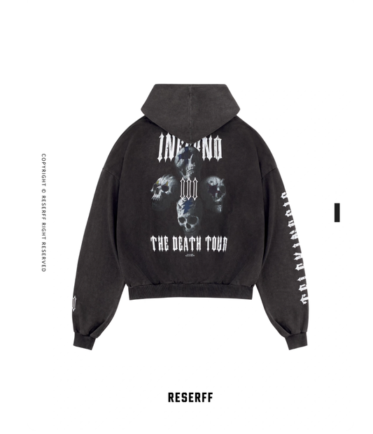 Vintage Graphic Distressed Washed Zip Hoodie D.GRY