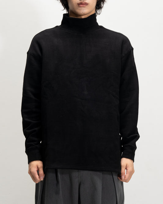 Blended Fabric High-Neck Split Long-Sleeve T-Shirt BLK