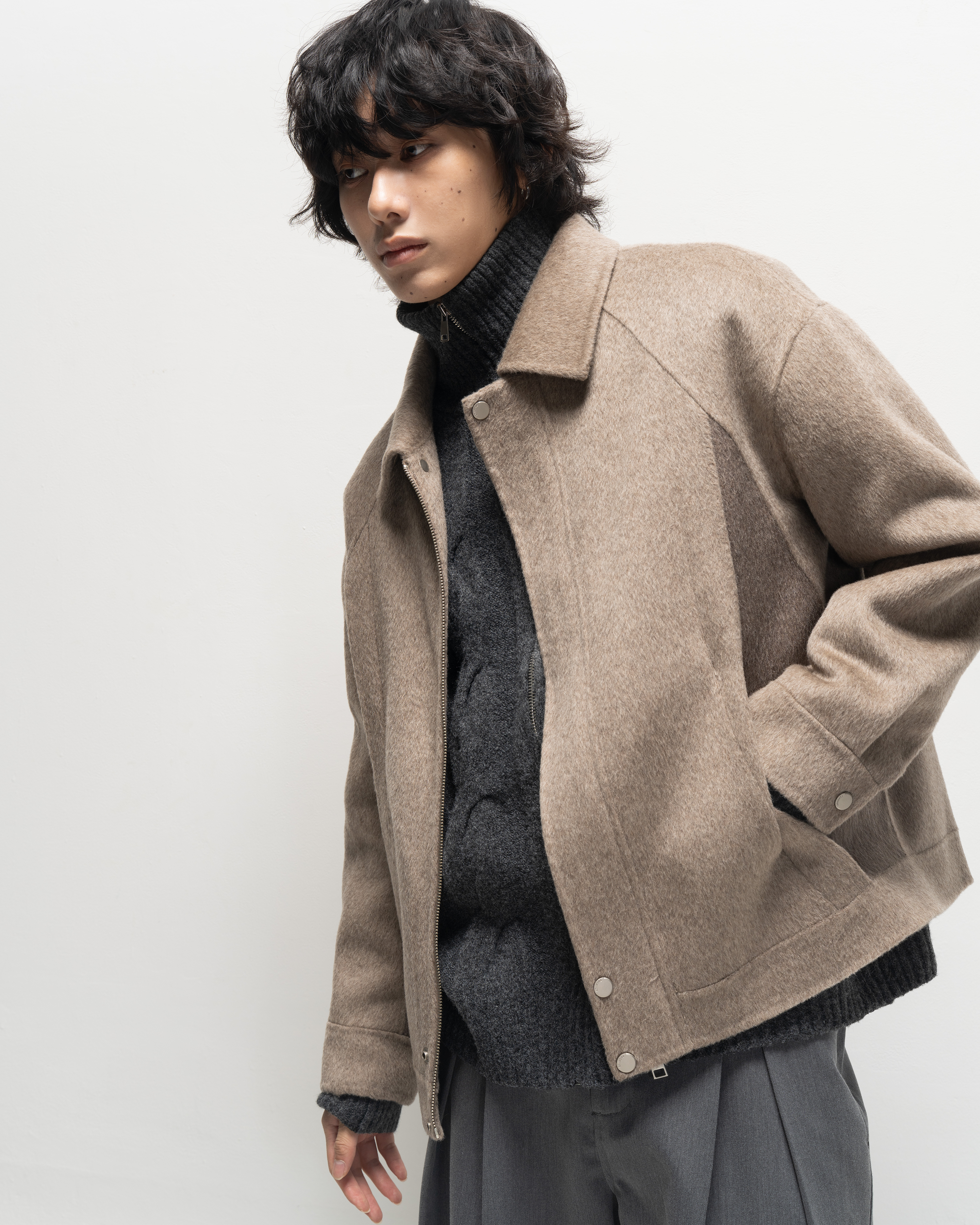 Fake Two-Piece Premium Collar Jacket WHT