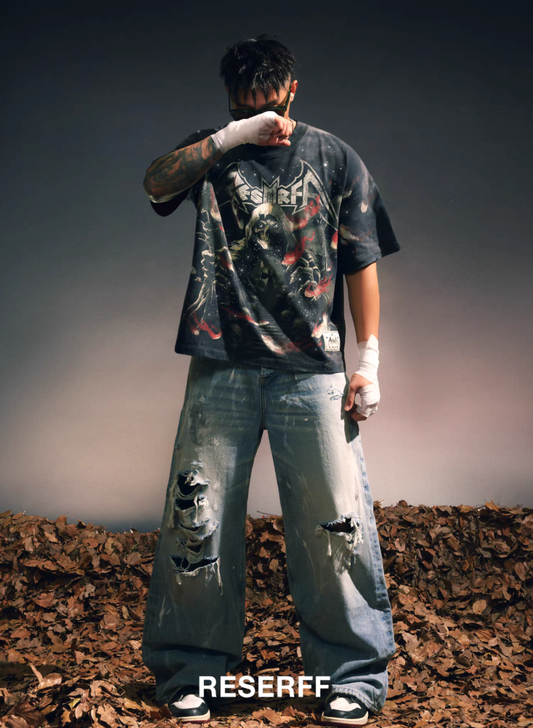 Heavy Distressed Patchwork Denim Pants