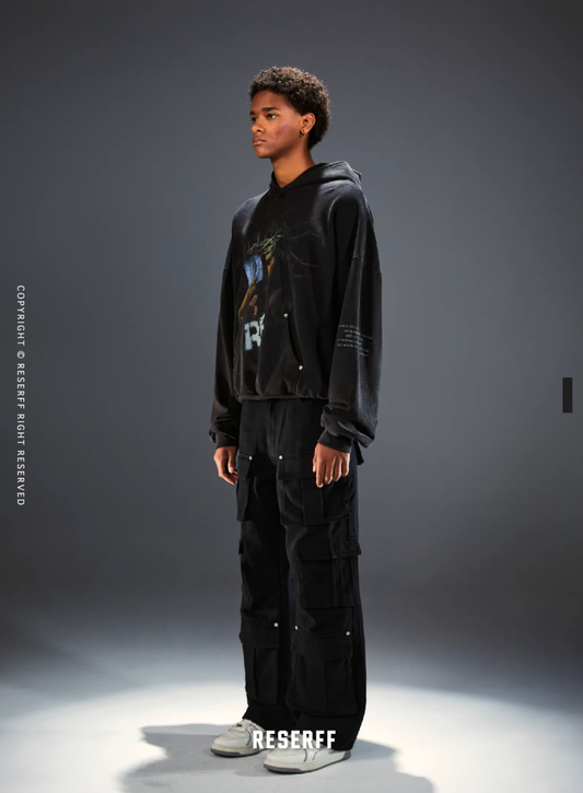 Vintage Graphic Distressed Pullover Hoodie D.GRY