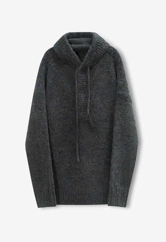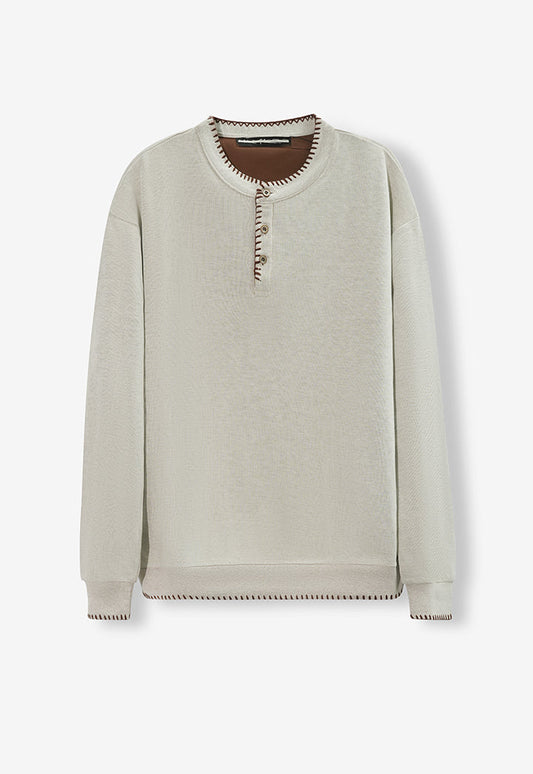 Hand-Stitched Henley Neck Knit Sweatshirt