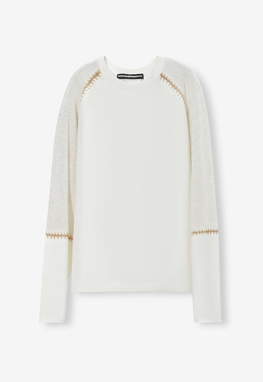 Hand-Stitched Patchwork Knit Long Sleeve T-Shirt