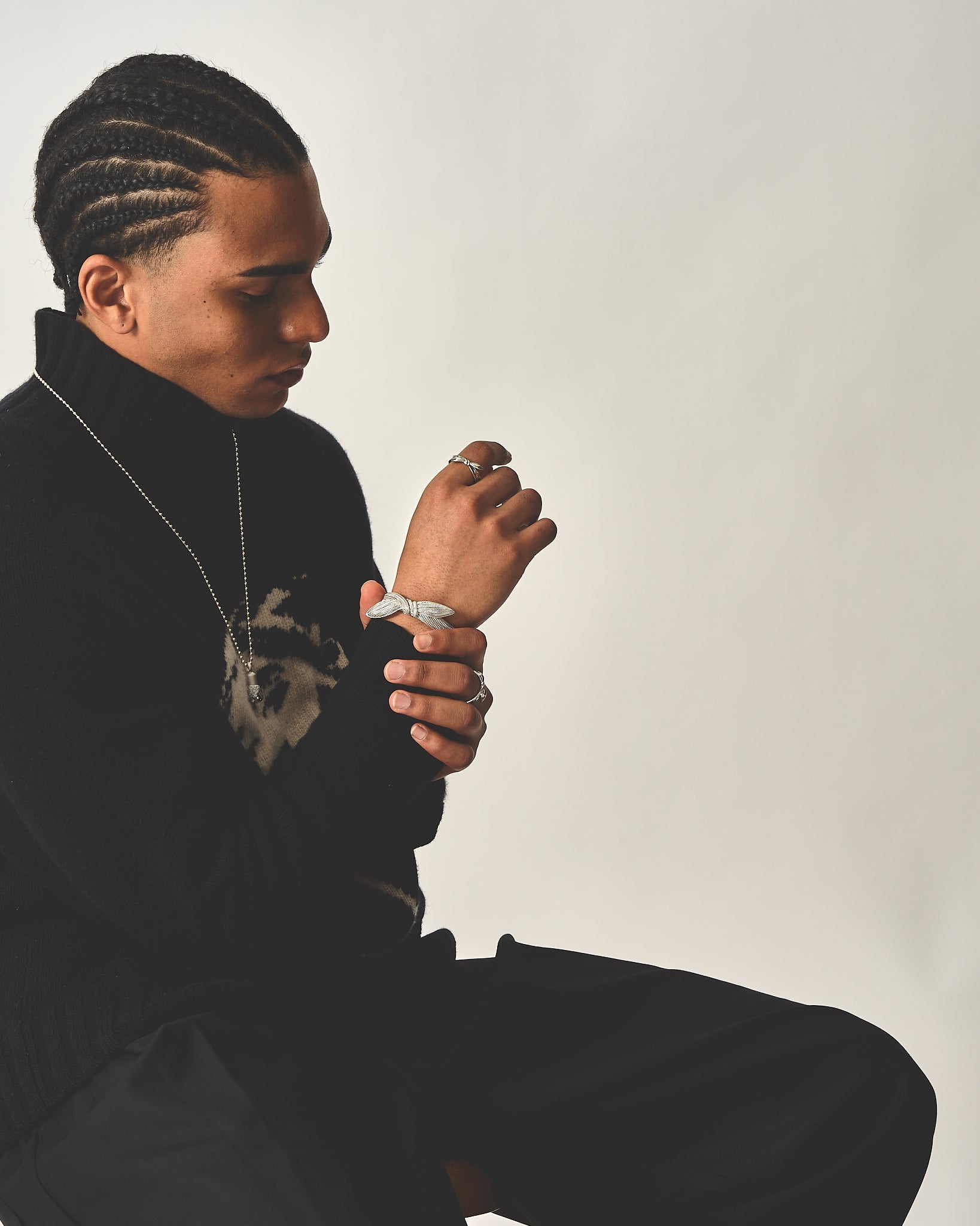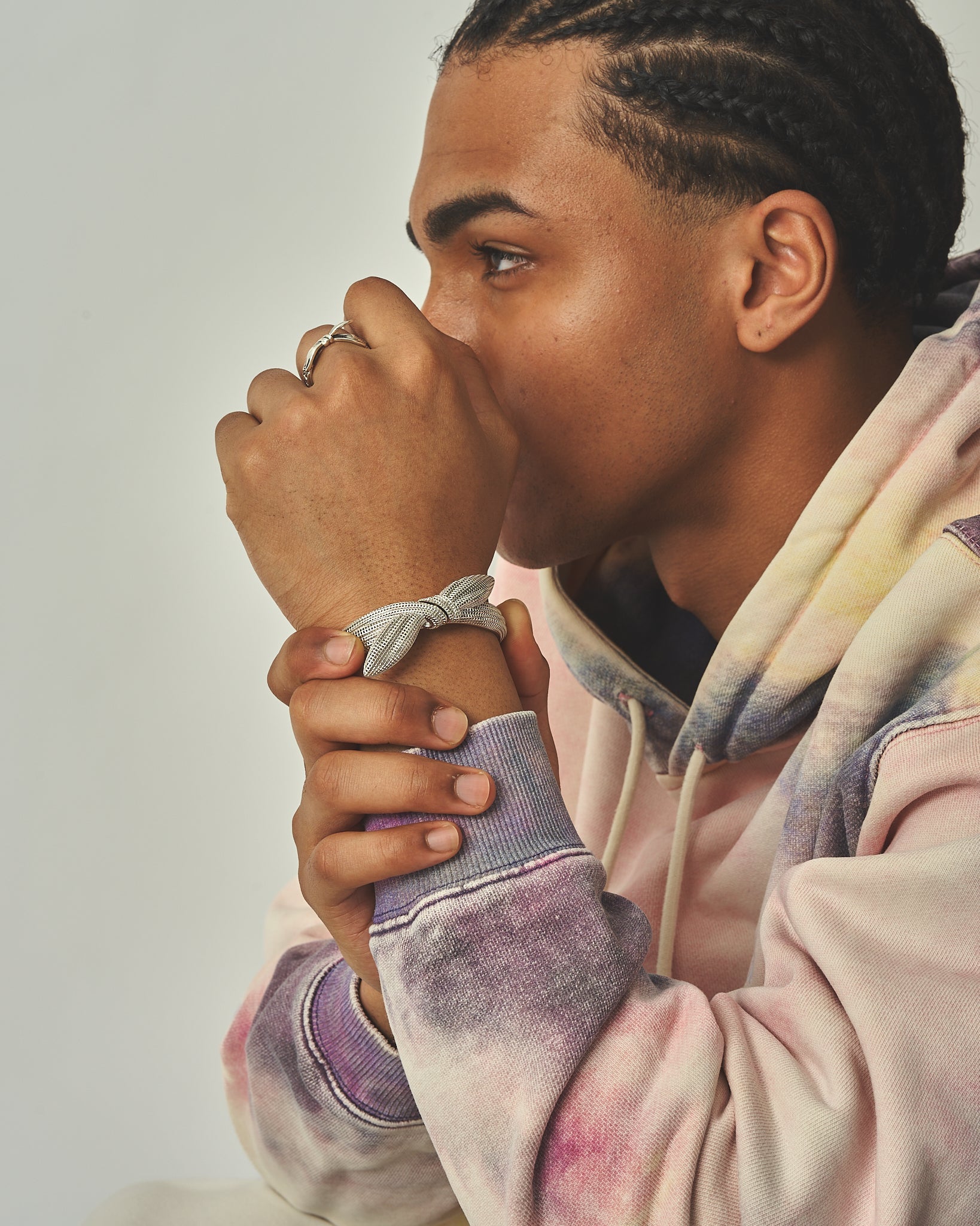 ヒップホップのレジェンドたちに捧げるバンダナバングル。2Pacのように、バンダナを"強さ"と"自己表現"の象徴にしたアイコンたちへのリスペクトを込めました。細かいプリーツのディテールで布の質感を再現し、S925スターリングシルバーでタイムレスなデザインに。磨き上げられた仕上げとシームレスなマグネット式クラスプで、耐久性と快適な着け心地を実現しました。自信とスタイルを持って生きる人のための、存在感あふれる一本です。