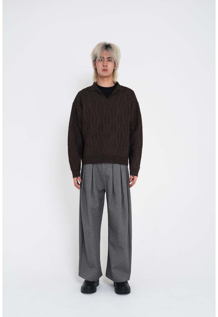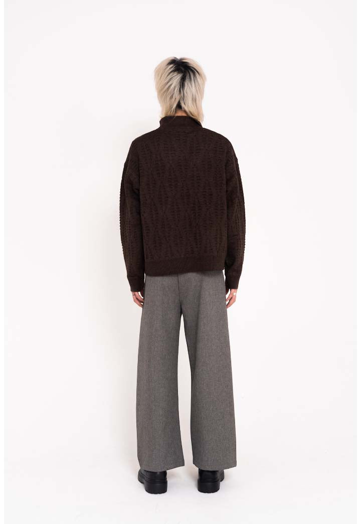 表面に立体的なジャカード柄を施したデザインニット。
