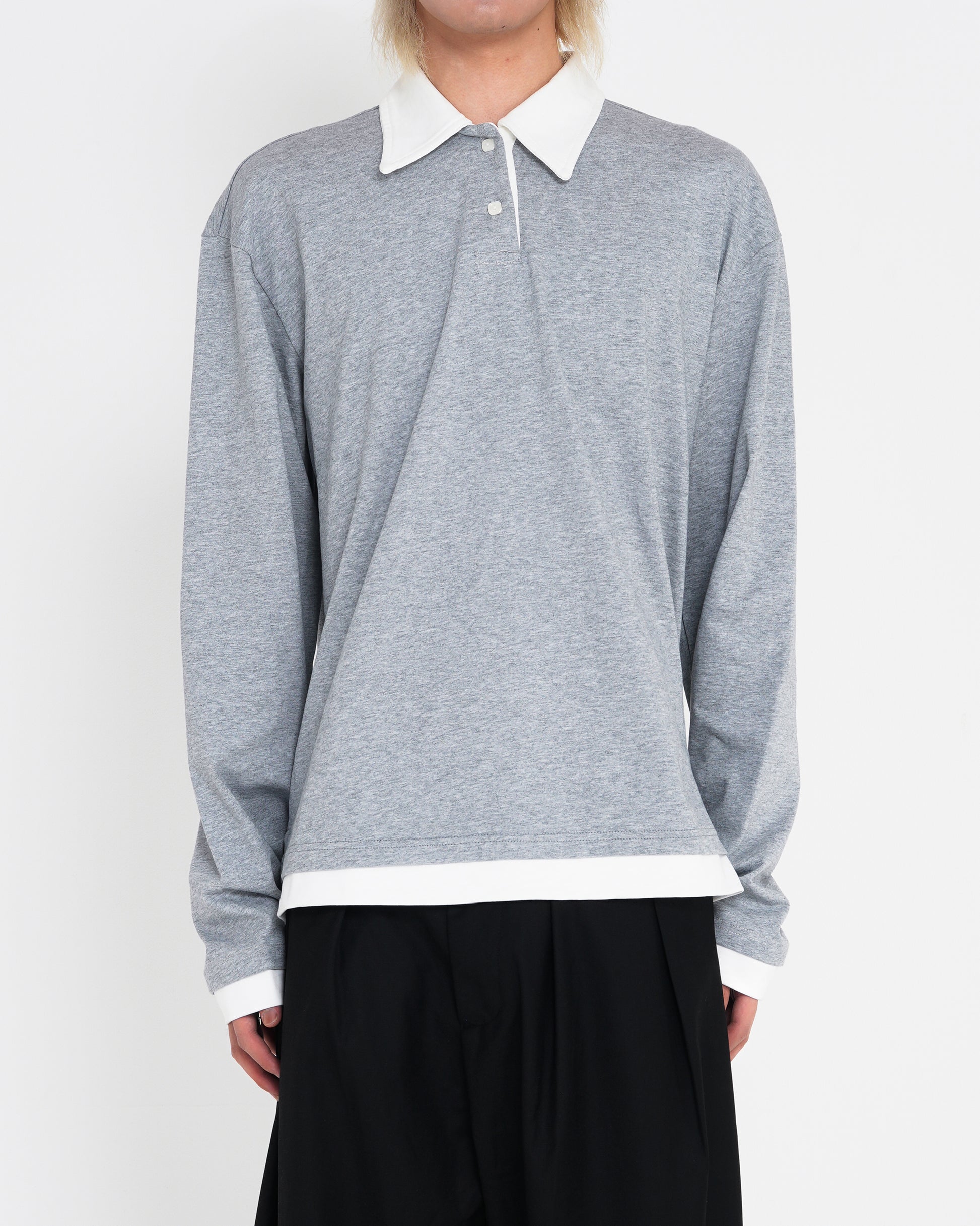 トラッドなポロTEEをベースに見頃との素材にコントラストが出る。