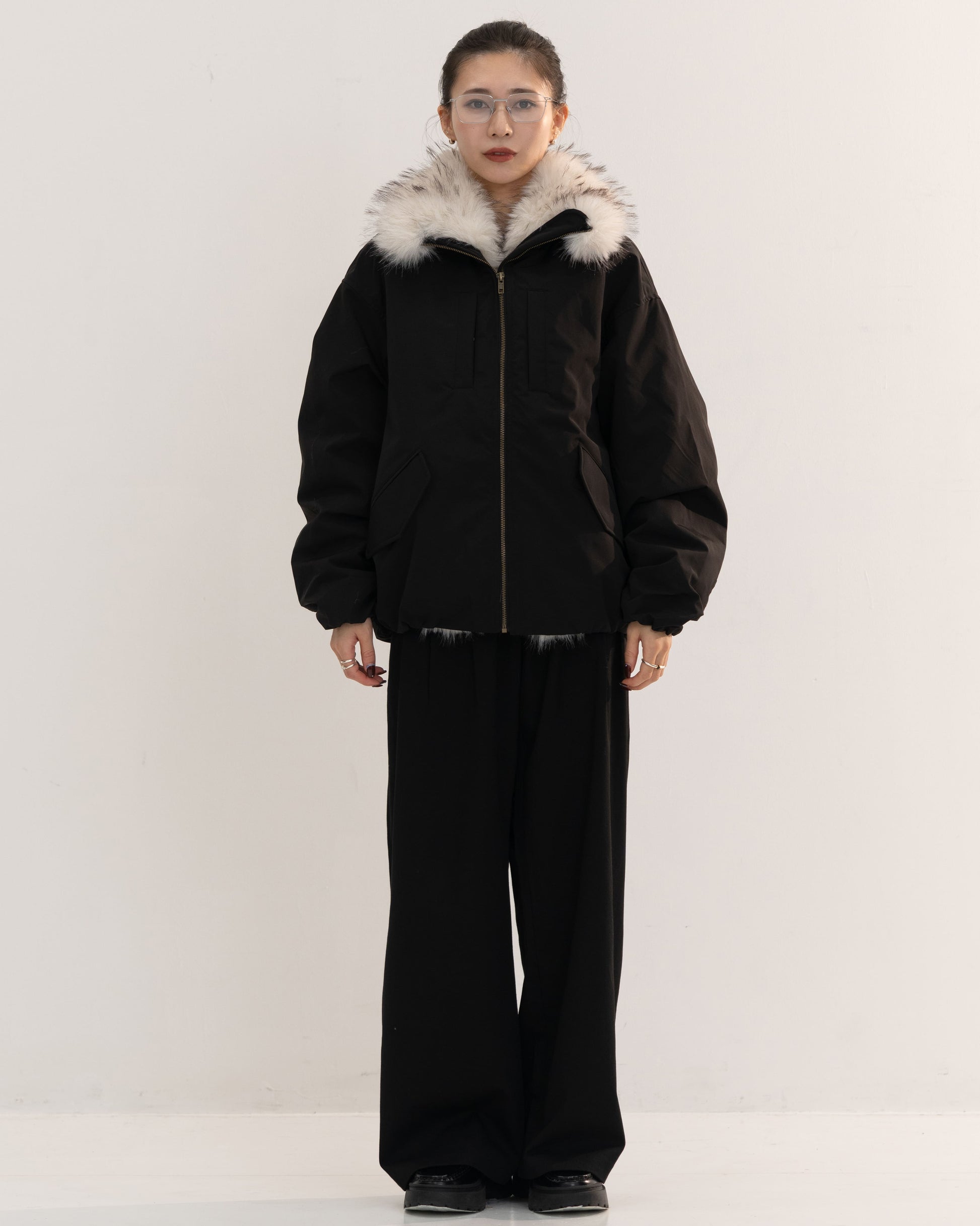 【予約販売1月中旬配送予定】MEI. FUR COLLAR BLOUSON BLACK