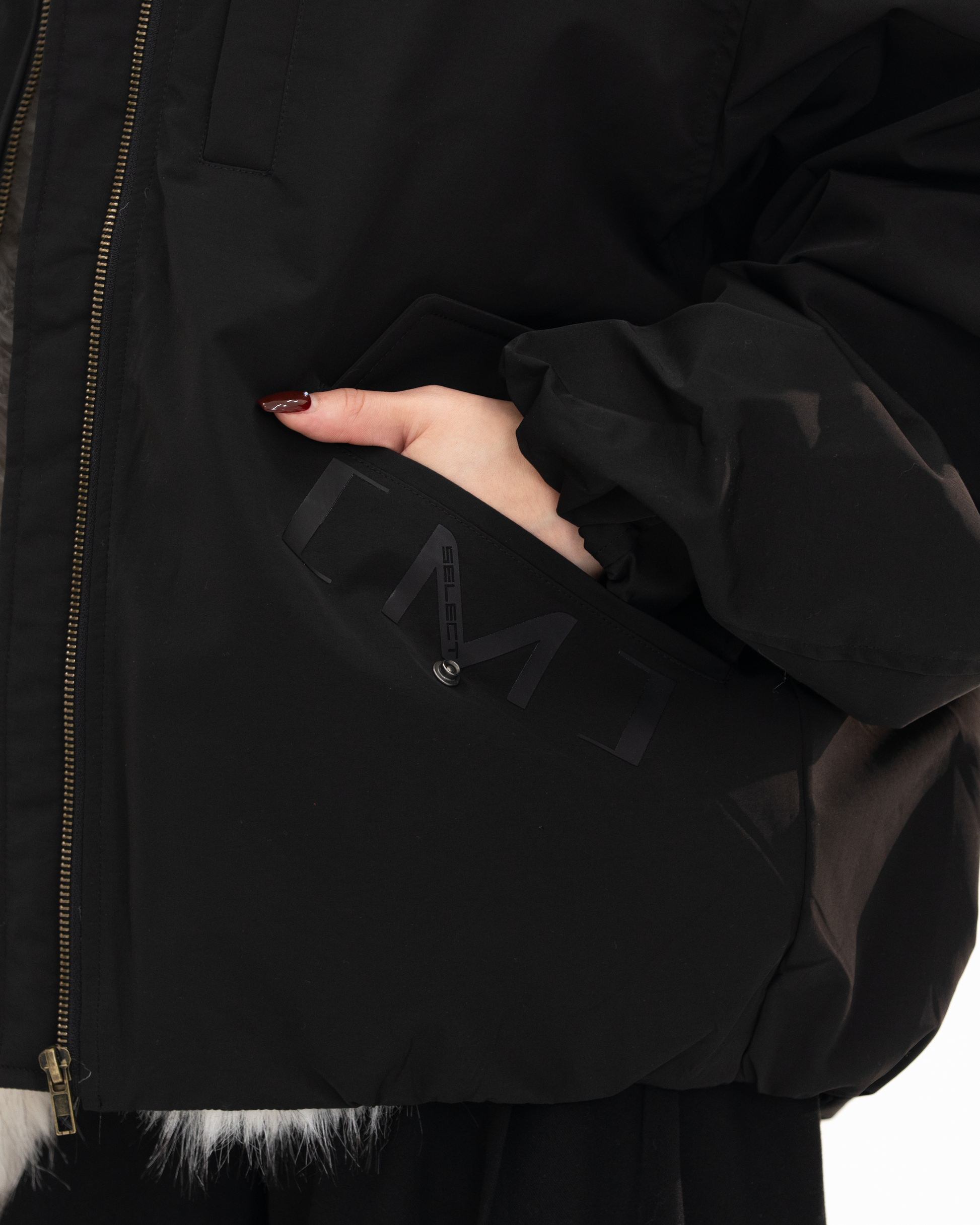 大きめのフードラインから覗くファーは存在感抜群で、