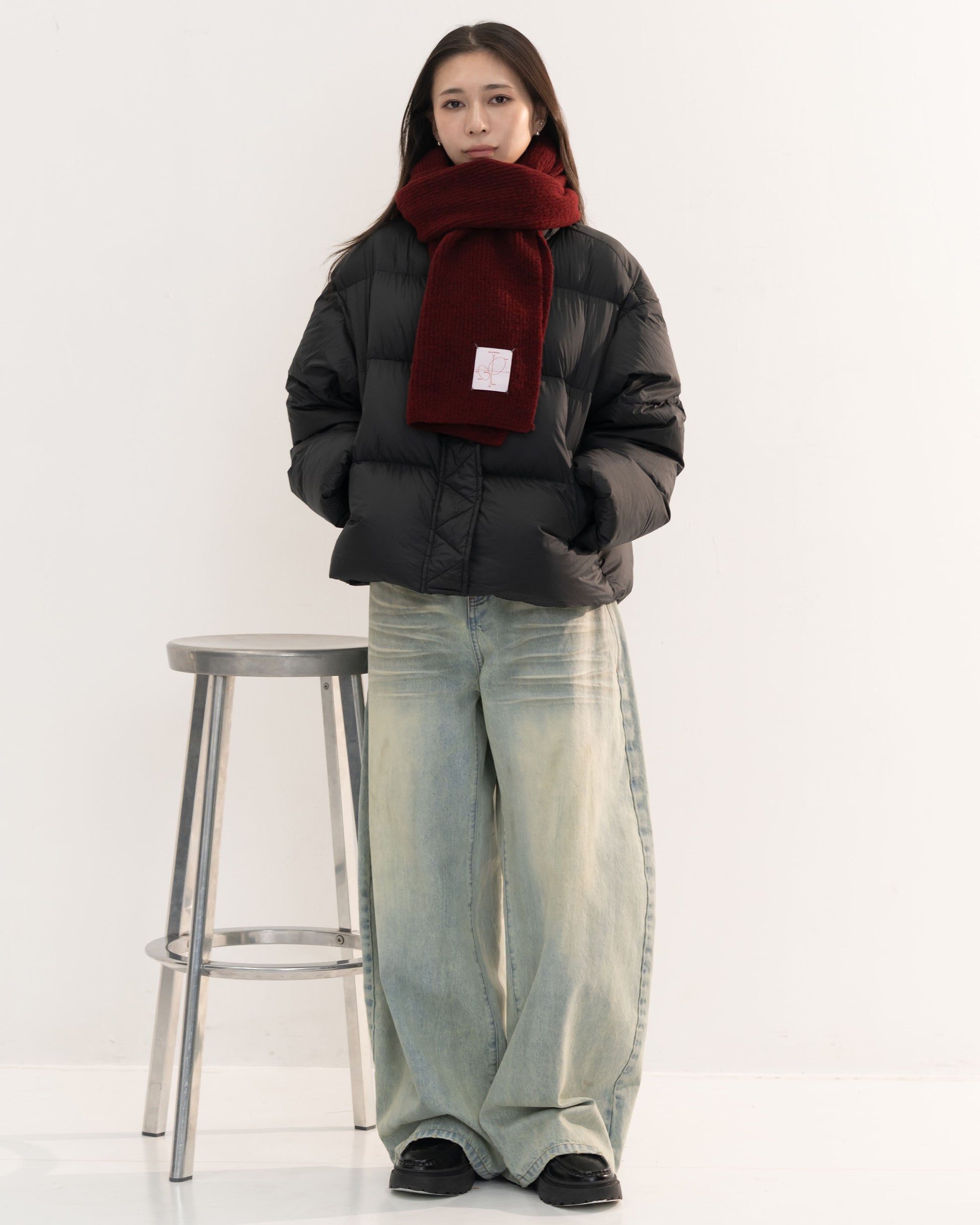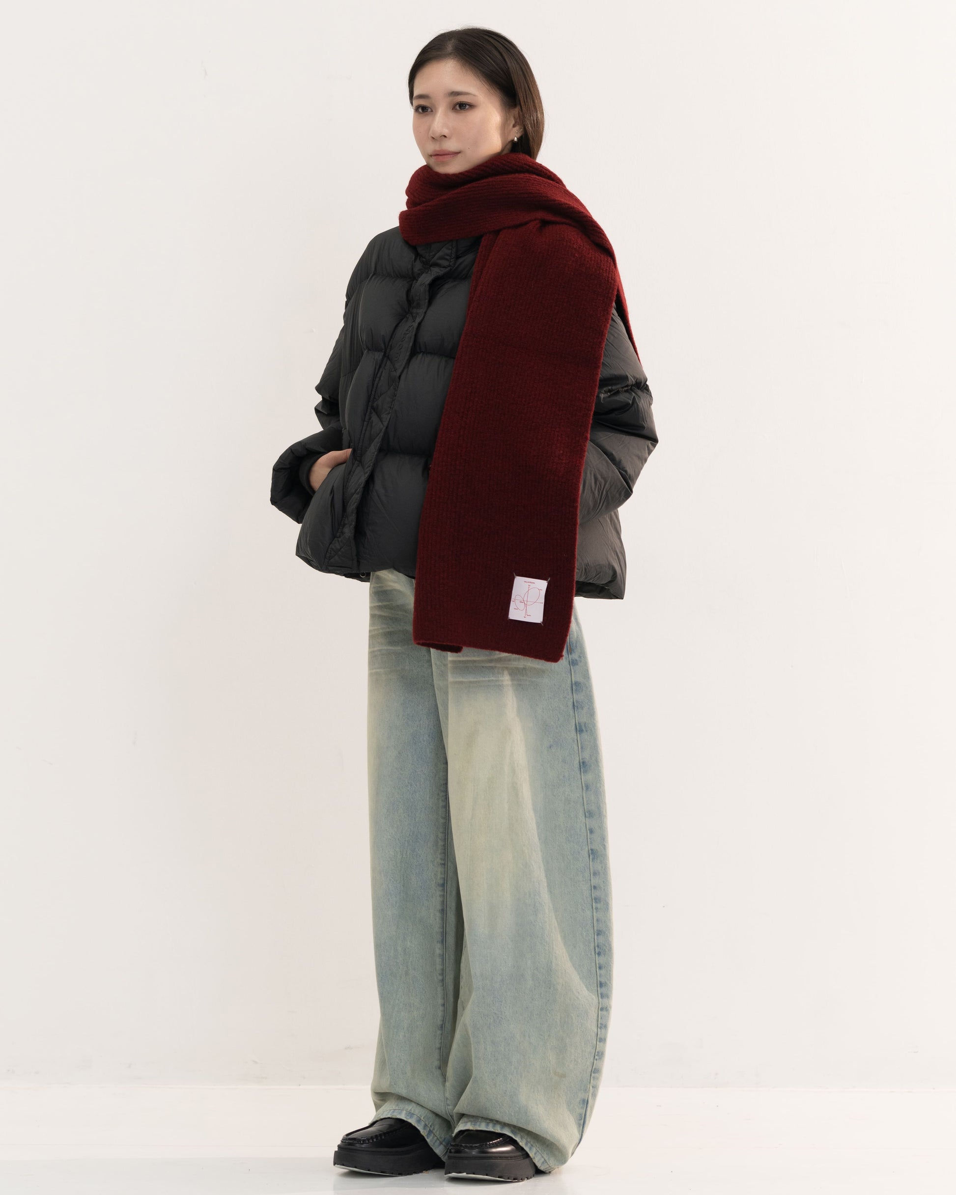 長さにゆとりを持たせているため、一重巻きでも二重巻きでもバランスよく決まり、寒い季節のデイリーに頼れるアイテムです。