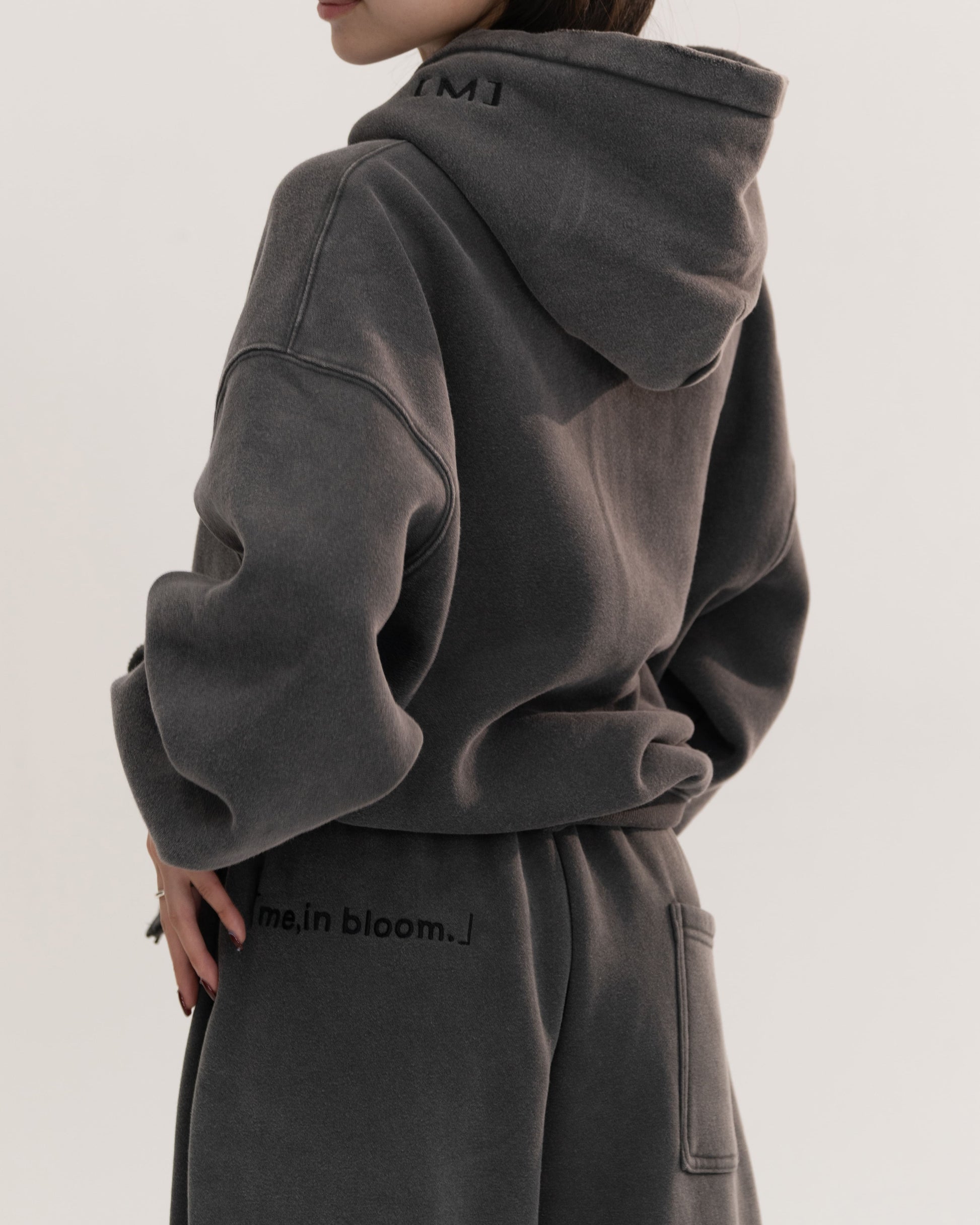 右腕の袖には、「me, in bloom.」オリジナルコラボレーションネームタグを取り付け、フードには今回のコラボレーションを記念した限定ロゴが本体同色糸で刺繍が施されています。