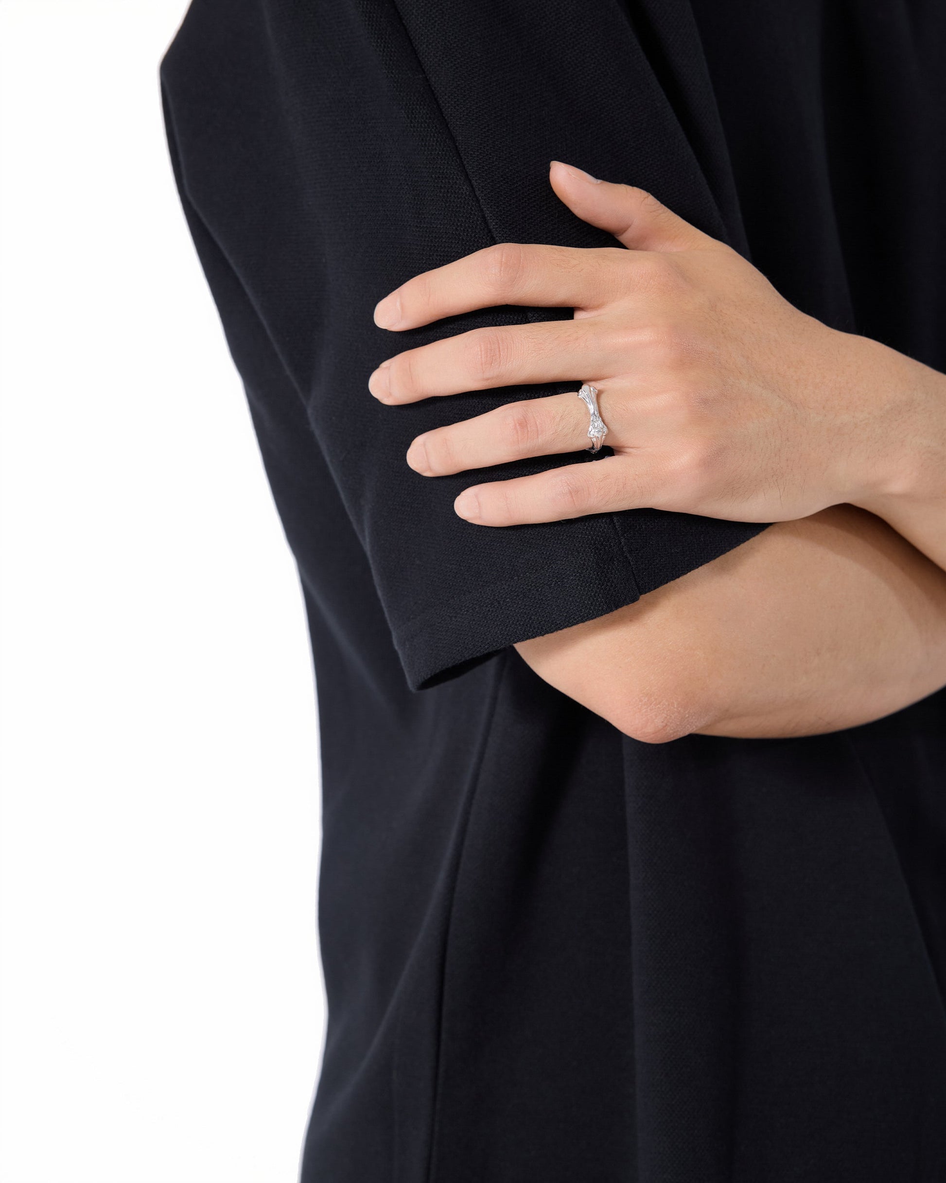 With a design reminiscent of rippling waves, the Ocean Wave Ring embodies natural fluidity and radiates a harmonious brilliance of movement and stillness.
