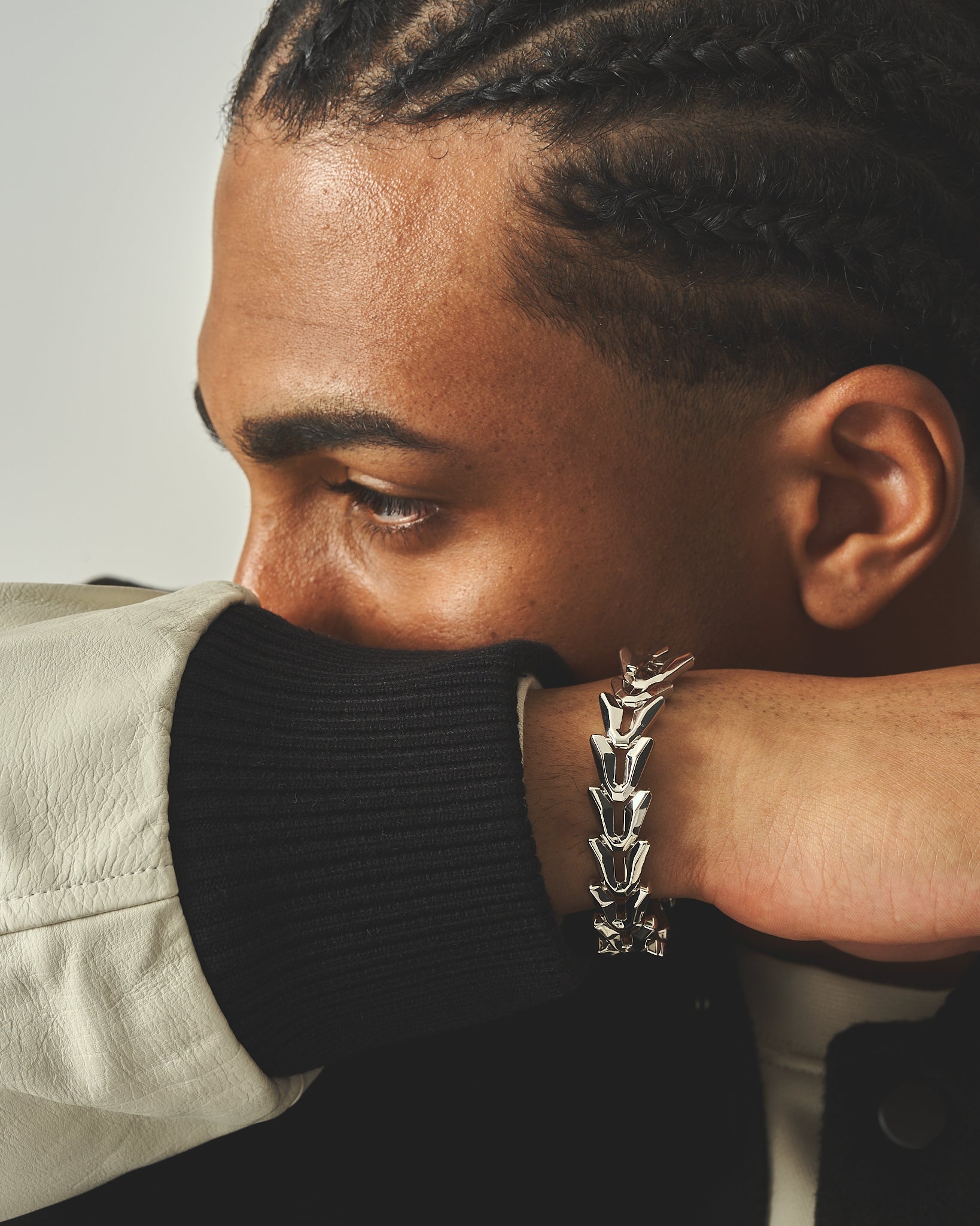 A symbol of resilience and ambition, the Victory Bracelet embodies hip-hop’s spirit—where struggle fuels success. Its chain-link “V,” inspired by the Victory gesture, merges vintage and futuristic aesthetics. Crafted from S925 sterling silver with a sleek electroplated finish, it’s built to endure—just like the champions who wear it.